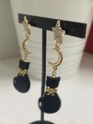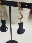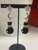 猫のチャームと月のパーツを使用したスターピアスになります。