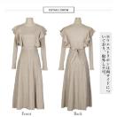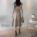 身体のラインが出やすいニットワンピですが、肩のフリルが気になる二の腕をカバー、ハイウエスト切り替えが脚長に見せてくれます