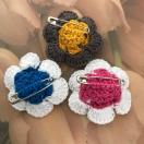 かぎ針編みの花びらがカールしたお花モチーフのブローチです。