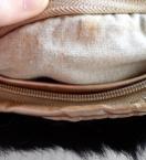こちらも写真ではどうしても分かりにくいですが、中の布全体に茶色の斑点があり一見汚れの様に見えてしまうのですが、これは新品当初からある布の模様で決して汚れではありませんのでご了承ください。