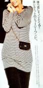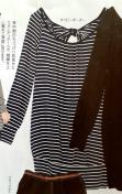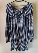 新品 PJ ワンピース チュニック 後ろリボン ワンピ 紺 ネイビー ボーダー 美シルエット トップス プルオーバー パフ長袖 カットソー 洋服 レディース ピーチ・ジョン