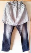 新品 お腹楽チン ゆったりヒップ ジーンズ 大きいサイズ ジーパン デニム スカート付き ストレッチ ウエスト73 股下78 ストレート パンツ 黒 ブラック レディース 楽しておしゃれ オーバースカート 付き