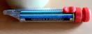 上の丸い部分をクルクル回し使いたい色の位置を合わせ、横の赤のつまみをスライドさせてその色を出す仕組みで子供達も楽しく使えると思います。