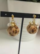 ハンドメイド ファーボールのチャームとビーズを使用した樹脂のノンホールピアス(イヤリング) レオパード