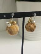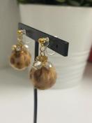 フェイクのファーボールチャームとビーズを使用した樹脂のノンホールピアス(イヤリング)になります。