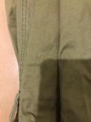 シミや汚れなどはなく全体的に美品ですが、左足裾付近に小さく色落ちしている箇所があります。