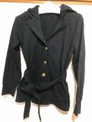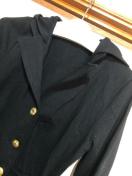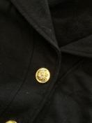 金ボタンの上着ですが、スウェット生地で、カジュアルに着用できます。