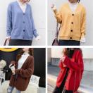 カーディガン学生秋/長袖カーディガン女/ドロップショルダー