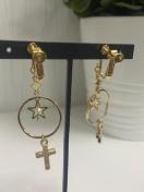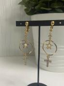 クロスのチャームと星のチャームを使用したイヤリングになります。