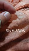 検品したところ、写真8,9のように、左肩の後ろ、縫い目に近い部分に5mm程の小さな穴を見つけました。