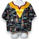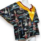 キーネックに首回りがバイカラーのサテン切替になっていて個性的なデザインです☆