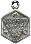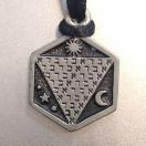 有名な"アブラカダブラ"のフレーズは熱や病気を治療する効果があるとされています。伝統的な魔法の図形を用いた治癒のペンダントです。ブラックコード付き。両面。(T:2.5cm)