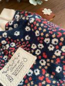 ネル生地にタグをお付けして、可愛いお花レースのレザー風タグを挟みました