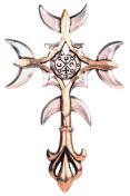 EastGate ゲティアクロス魔法の十字架は、中世のグリモワに記載された秘密のシンボルを中心に、半月型のシンボルを四方に配置したクロスです。このクロスは直感的で霊的な第二の眼の力をもたらし、心眼力を高めるタリスマンとされています。