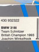 ◆ミニチャンプスの1/43 BMW 318i Team Schnitzer British Champion 1993 Joachim Winkelhockです。