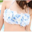 たっぷり立体的なフラワーモチーフにビジューを散りばめた可愛さ溢れるビキニトップス