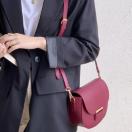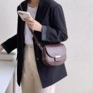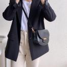 金具を差し込むだけで簡単に閉じる楽ちんな丸っこいフォルムのショルダーバッグです
