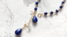 瑠璃色のラピスラズリに小粒の水晶をあわせました。