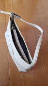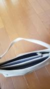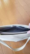 ☆外側ファスナーポケット1、中は3か所にしきられてます。スナップ止め収納が1ヶ所ありファスナーポケットあり、開き収納1ヶ所はポケット2つあり、真ん中はファスナー収納になっています。仕切りがたくさんあるのとポケットが多めなので細かく収納できると思います。
