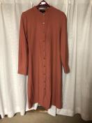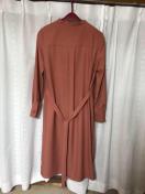クリーンな比翼仕立ての長袖シャツドレス。控えめなバンドカラーやサッシュベルトなど、洗練されたディテール使いにも注目です。サッシュベルトはそのままでも、後ろに結んでさり気なくウエストラインを出したり、前で結んでマークしたりと、印象が変えられます。一枚でワンピースとして着るのはもちろん、ガウンとして羽織っても。 ドレープが美しく、滑らかでシルクのような高級感のある仕上がりです。締切日時