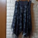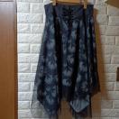 サイドファスナー。ウエスト部分ブラックで切り替えがあり、レースアップ。ネットレースで二重になっているコウモリプリントの裾がアシメになっているロングスカートです。