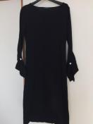 お色はブラック系、サイズは34、身幅は約40.5cm位、着丈は約96cm位、素材はアセテート77%、ナイロン23%になります。