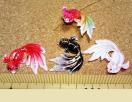 鮮やかな色合いに金色が映える、ぷっくりとした半立体の金魚です。