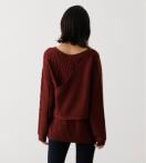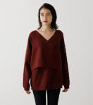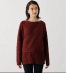 ケーブル編みと無地編みで1枚でレイヤードしているデザインニットトップ。