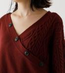 着ぶくれしやすいケーブルニットですが、上部分に無地編みになっているので、すっきりシャープな印象のニット。
