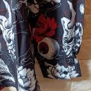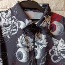 般若面と目玉と花の個性的なプリント長袖シャツです。