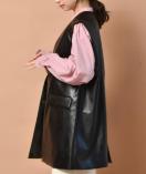 トレンドの重ね着スタイルを完成させるフェイクレザーベスト