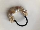 キラキラビーズを盛り盛り編み混んでヘアゴムを作りました。