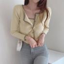 ニットカーディガンに同素材のキャミソールの2点セットです