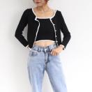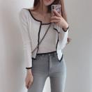 配色リブニット上品/ニットソー大人女性/カジュアルトップス