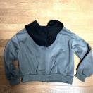 丈が短めで、スカートもハイウェストになっているので、足が長く見えスタイルアップすると思います。パーカーに二つポケットあり。