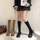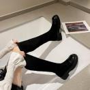 ブーツ 韓国風/ロングブーツ 黒靴/ローヒールシューズ