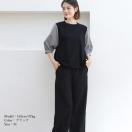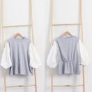 ゆるっとした異素材を切り替えたボリューム袖トップスです