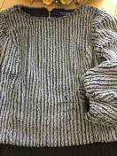 お色はブラック×グレー系、サイズは38、身幅は約44cm位、着丈は約52cm位、素材はポリエステル100%、裏地キュプラ100%になります。