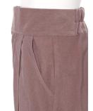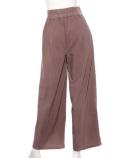 ┗ポケット2個。ウエスト後ろゴム。裏地なしでゴワつかず履きやすいです♪薄手コーデュロイ生地で柔らかくて暖かみがありポリエステル素材で乾きも早い♪丸洗いもOK♪ハイウエストで股上が深くて安心♪ギャザー入りでお尻をカバー♪ワイドシルエットで体型カバー&ゆったり動きやすい♪落ち着いたダークピンクで合わせやすい♪透けない安心♪真夏以外の3シーズン着回せて便利♪センタータックラインがお洒落で形も綺麗でオフィスにもカジュアルにもオススメのロングワイドパンツです☆
