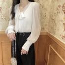 スリーブは透け感のあるシフォン袖で爽やかに女性らしさをアピールできます