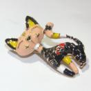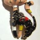 カラフルな猫のブローチです。ピンク色系の肌色。