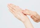 いつものお手入れの後、手に取って肌の上に優しく塗り、手のひらでもむように抑えます。