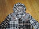 WOOL CHECK PADDED HOOD DUFFLE COAT