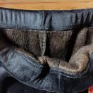 ウエストゴム、表面ベロア素材、2本ライン、裏がシャギーになっているのであったかです。