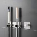 ネジ不要、強力粘着パットで貼り付けるだけの簡単設置なモップホルダー