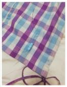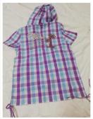 タグ付 チェック柄 フード付半袖シャツ 胸と背中にかわいい椰子の木と英文字のロゴ有