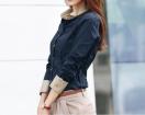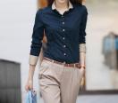 [春秋 長袖 スリム シャツ 2色 ダークブルー+ベージュ ブラウス]カジュアル、サイズ:L:肩部:38cm、胸囲:92cm、腰部:80cm、丈:62p、袖丈:61cm