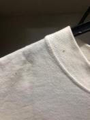 首周りに汗染みと小さなシミ、右肩部分に小さなシミ、ナイキロゴ横に薄いシミ、バックプリントに所々薄れ、バックプリントUとTの間に小さなシミがあります。