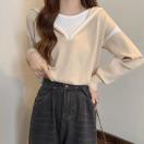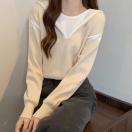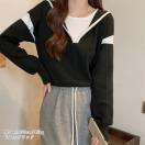 無地ニットセーター/プルオーバーニット/ニットフーディー