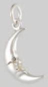 三日月チャーム スターリングシルバー製のこの小さなチャームは、チャーム ブレスレットやチェーン、コードに最適で、骨太な月面の男の顔で飾られた三日月を表現しています。このチャームは長さ1/2インチで吊り下げられます。スターリングシルバー925製、ヘッドのみ。JCM993